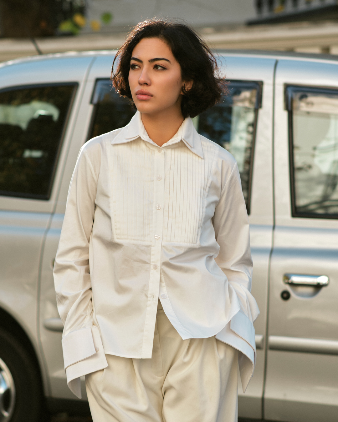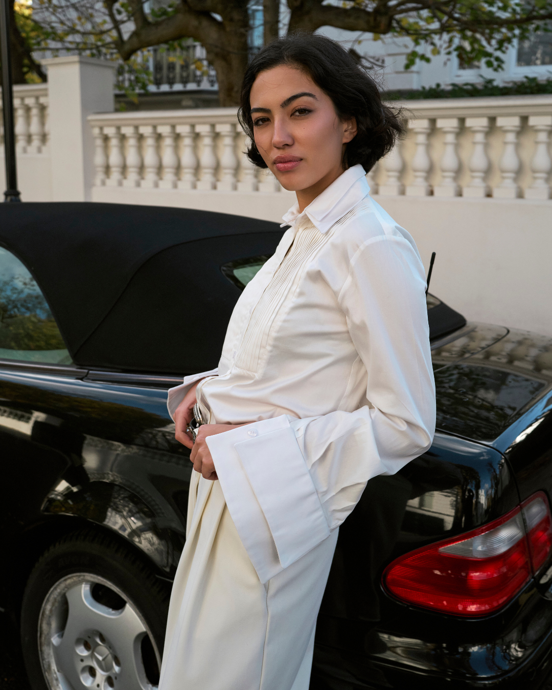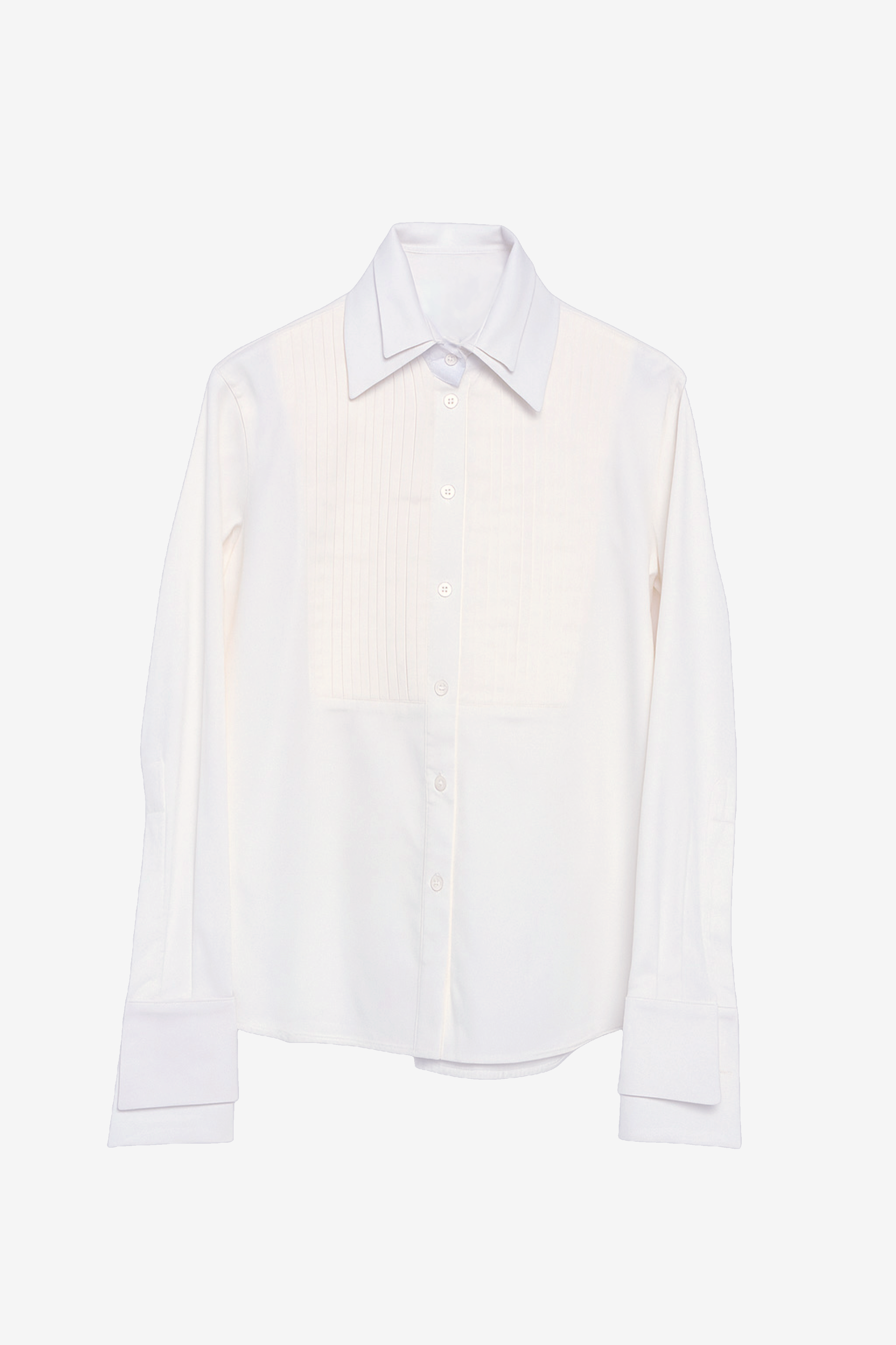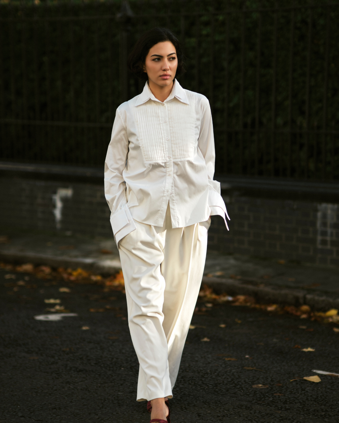 A contemporary take on the tuxedo shirt. Tailored for confidence with subtle formal detailing - refined yet relaxed. A modern interpretation of classic womenswear codes.
